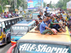 ঢাকায় ফেরা: ঝুঁকি নিয়ে বাসের ছাদে যাত্রীরা