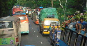 সিরাজগঞ্জে বঙ্গবন্ধু সেতুর পশ্চিম পাড়ে দীর্ঘ যানজট