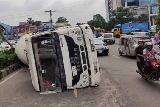 জাহাঙ্গীর গেটে উল্টে গেল লরি