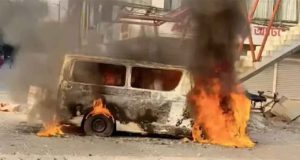গভীর রাতে উত্তরায় মাইক্রোবাসে আগুন