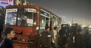 হাজারীবাগ বেড়িবাঁধে দাঁড়িয়ে থাকা বাসে আগুন