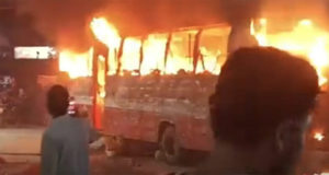 রাজধানীর মহাখালীতে চলন্ত বাসে আগুন