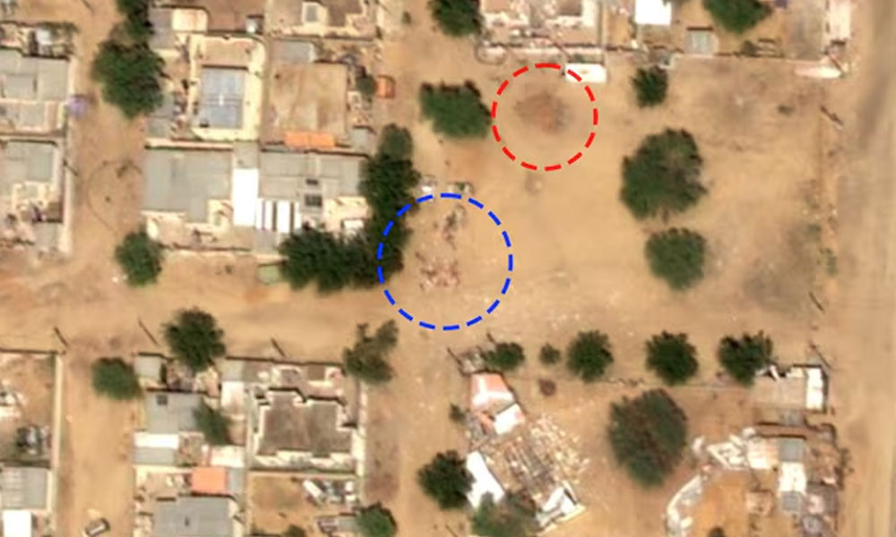 স্যাটেলাইট ছবিতে গোলাবারুদের আঘাতে ভবন ধ্বংস এবং আগুনে পোড়া চিহ্ন স্পষ্ট দেখা গেছে।