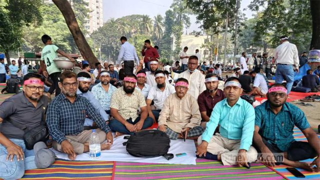 সোমবার তৃতীয় দিনের মত শিক্ষকরা শহীদ মিনারে অবস্থান নেন। সেইসঙ্গে দ্বিতীয় দিনের মত তাদের কর্মবিরতির কর্মসূচিও চলে।