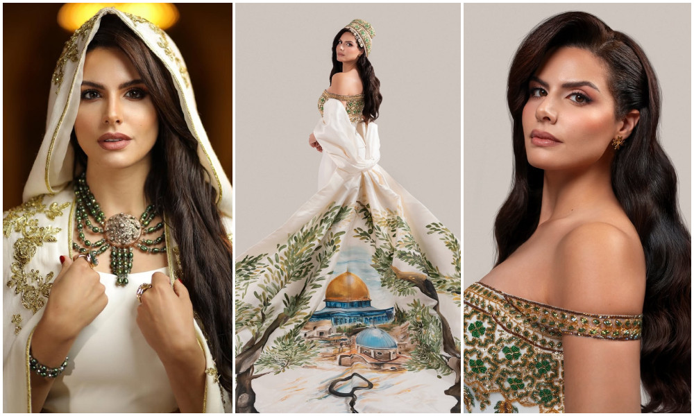এবারের মিস ইউনিভার্সে ফিলিস্তিনের ঐতিহ্যবাহী ‘শাতওয়া’ মাথার মুকুট হিসেবে পরেছেন। গাউনে ফিলিস্তিনের শান্তির প্রতীক হিসেবে জলপাইগাছের মোটিফ রয়েছে।