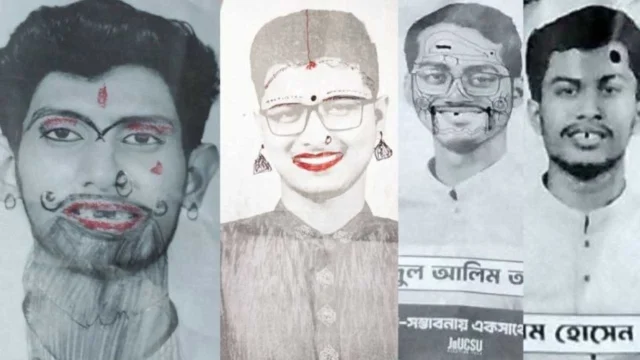 ছড়িয়ে পড়া ছবিগুলোতে দেখা যায়, পোস্টারে থাকা প্রার্থীদের ছবিগুলো লাল ও কালো কালি দিয়ে বিকৃত করা হয়েছে।