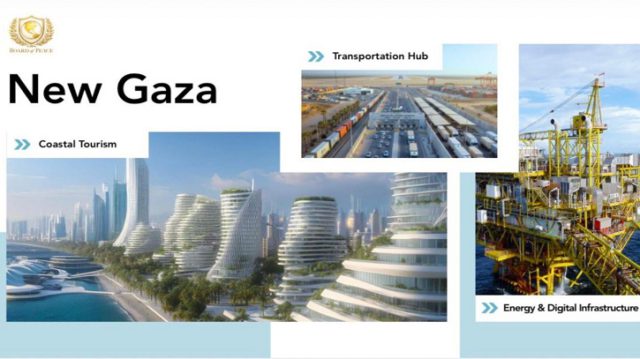 একটি মানচিত্রে দেখানো হয়, গাজার প্রায় ২১ লাখ মানুষের জন্য ধাপে ধাপে নতুন আবাসিক এলাকা, কৃষিজমি ও শিল্পাঞ্চল তৈরি করা হবে। সুইজারল্যান্ডের দাভোসে আয়োজিত ওয়ার্ল্ড ইকোনমিক ফোরামের এক স্বাক্ষর অনুষ্ঠানে এসব পরিকল্পনা তুলে ধরা হয়। সেখানেই মার্কিন প্রেসিডেন্ট ডোনাল্ড ট্রাম্পের নতুন বোর্ড অব পিসের ঘোষণা দেয়া হয়। এই বোর্ডের দায়িত্ব হবে ইসরায়েল ও হামাসের মধ্যে দুই বছর ধরে চলা যুদ্ধের অবসান ঘটানো এবং যুদ্ধবিধ্বস্ত গাজা পুনর্গঠনের কার্যক্রম পরিচালনা করা।