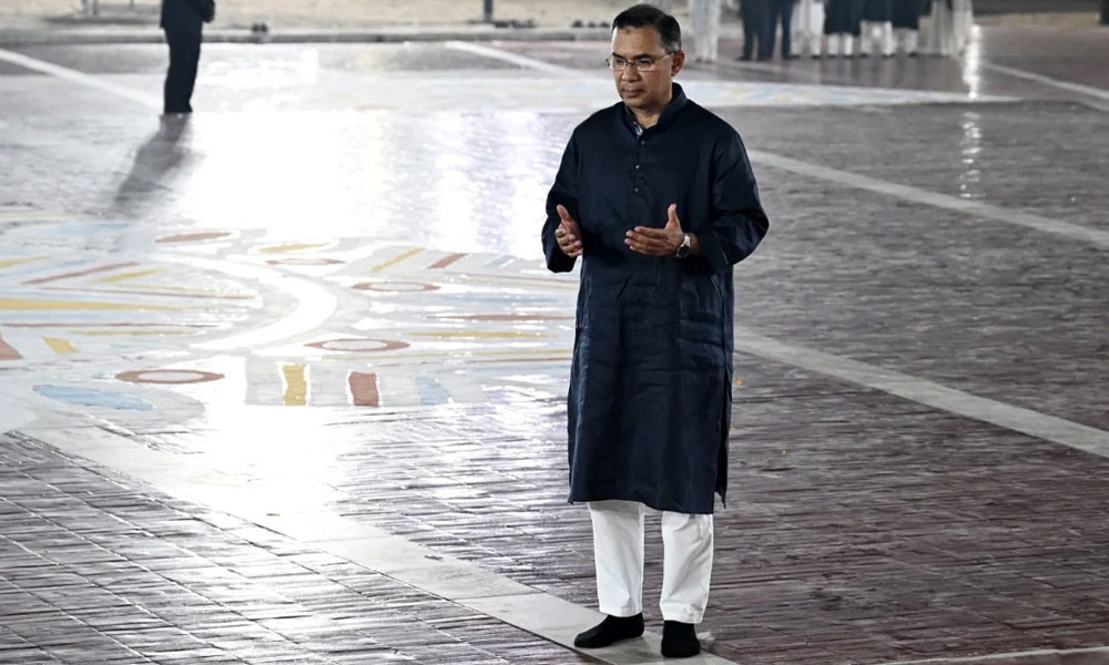 ভাষা শহীদদের প্রতি শ্রদ্ধা জানিয়ে ব্যতিক্রমী এক উদ্যোগ নিলেন প্রধানমন্ত্রী তারেক রহমান। ইতিহাসে প্রথমবারের মতো তিনি একুশের প্রথম প্রহরে কেন্দ্রীয় শহীদ মিনারে পুষ্পস্তবক অর্পণের পর সেখানেই দাঁড়িয়ে ভাষা শহীদদের রুহের মাগফিরাত কামনায় বিশেষ দোয়া ও মোনাজাতে অংশ নেন।